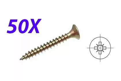 50db 4mm átmérőjű, 50mm hosszú, cink sárga sűllyesztett fejű csavar faforgácslapba, PZ2 fejjel.