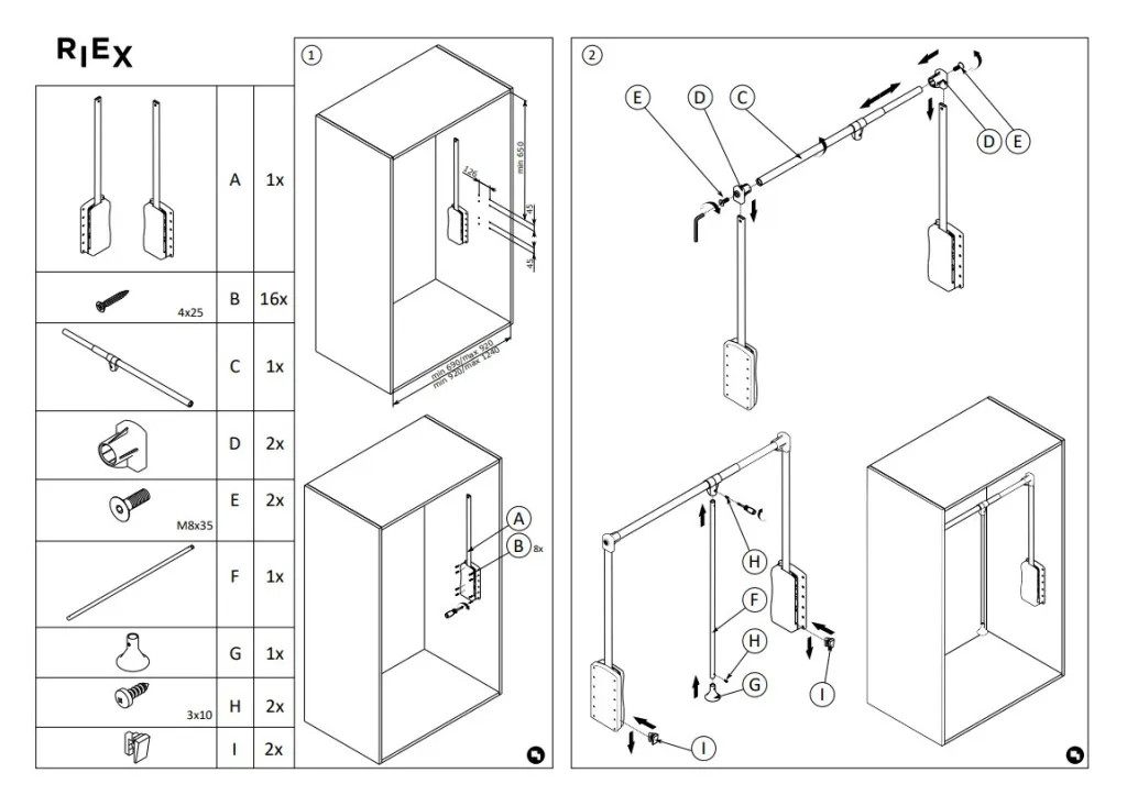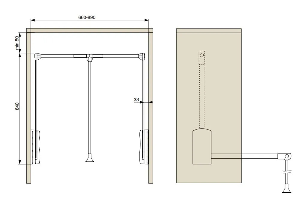 Könnyen összeszerelhető és beépíthető - a teleszkópos rendszer révén a korpusz szélességének megfelelően széthúzható.