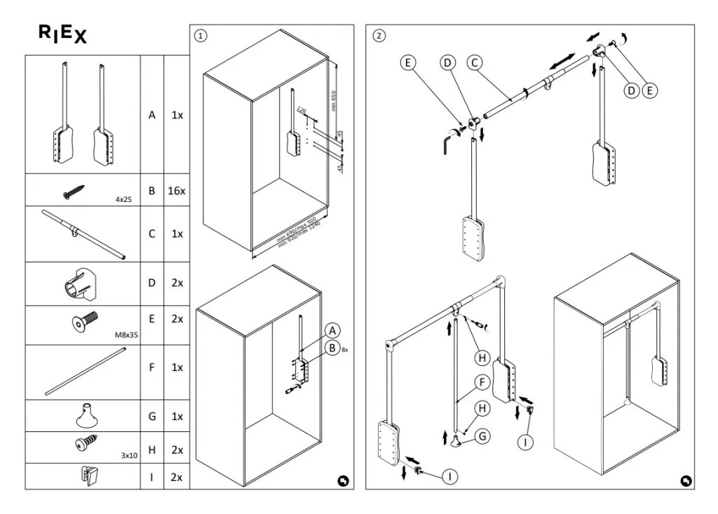 Könnyen összeszerelhető és beépíthető - a teleszkópos rendszer révén a korpusz szélességének megfelelően széthúzható.