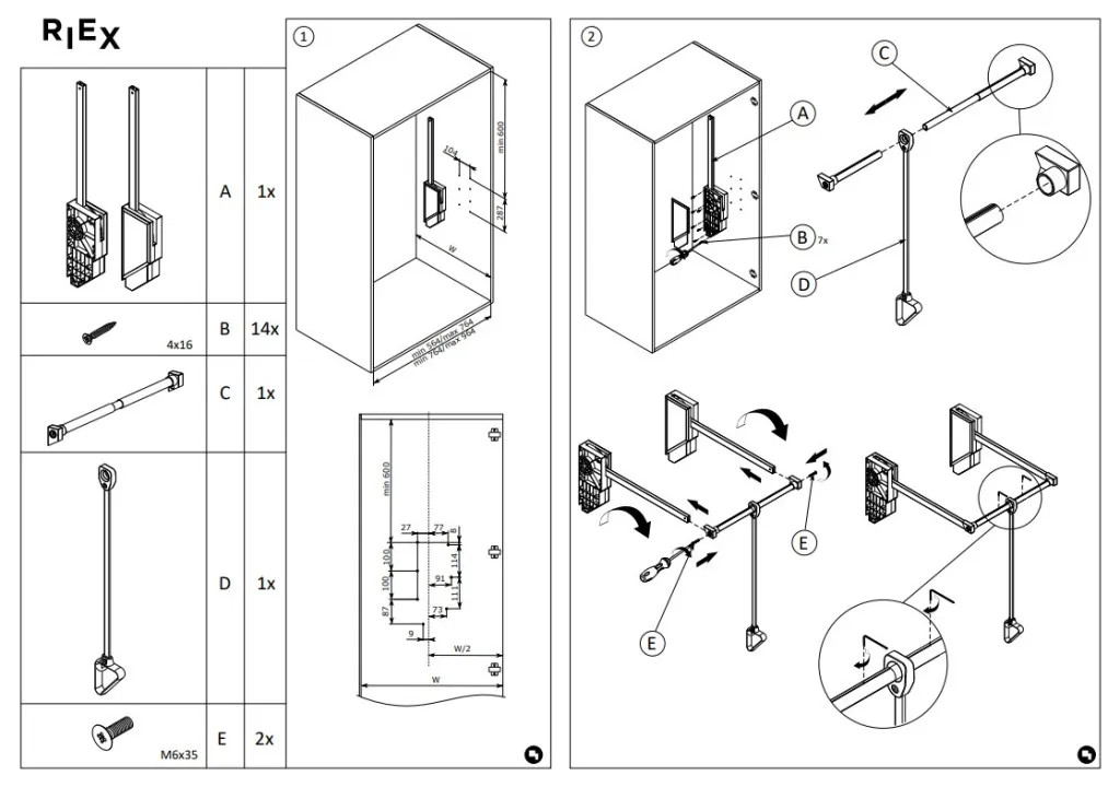 RIEX VX47 billenthető akasztórúd nagy terhelhetőséggel - 25kg. Szín: sötétszürke.