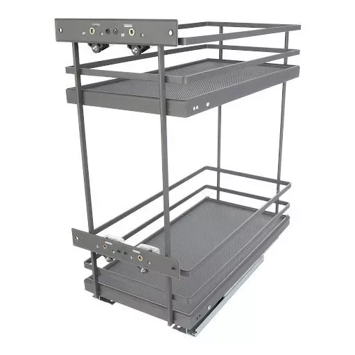 Kihúzható kosár alsószekrényekhez, korpuszfenékhez rögzíthető, rejtett fióksínnel, csillapítással. A drótkosarak alapanyaga króm.