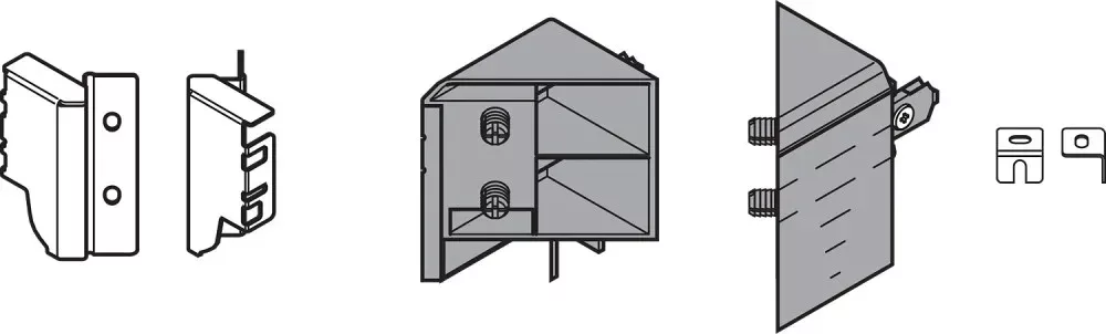 frontrögzítő szett régebbi típusú sarok fiókra SPACE CORNER . Fiókmagasságra "M" (fiók minimális belső magassága 224mm). A szett tartalmazza a frontrögzítőt Space Cornerhez, hátlap tartókat és sarokvasalatokat.