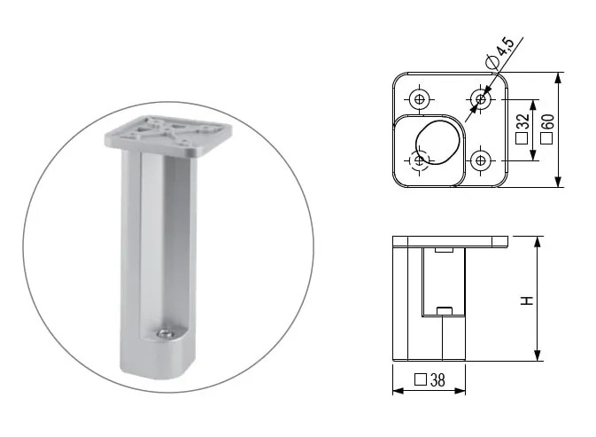 StrongLegs bútor láb FP005, 150Rmm, szürke RAL 9006