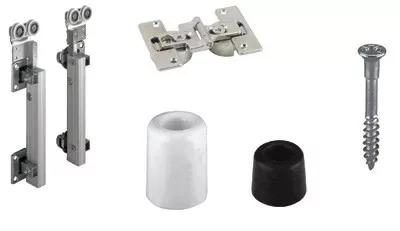 1 harmonikaajtóra. A szett összetétele: görgő tartóval balos, összecsukható pánt előhelyezett tengellyel, préseléssel, előszerelt tokokkal (átmérő: 10 x 11 mm) 5 db, csavar 3, 6x28mm 5db, alsó ütköző fehér 1db, felső ütköző fekete 1db.