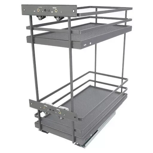Kihúzható kosár alsószekrényekhez, korpuszfenékhez rögzíthető, rejtett fióksínnel, csillapítással. A drótkosarak alapanyaga króm.