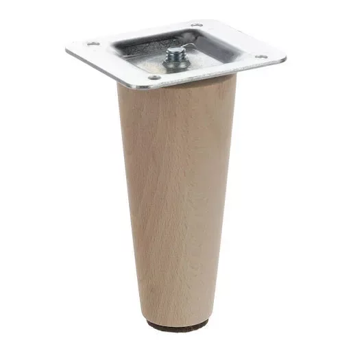 Kúp alakú | függőleges | egyenes fa bútorláb fém talppal, amely a bútor aljára csavarozható. A bútorláb nincs lakkozva, így bármilyen színre festhető vagy olajjal, viasszal, illetve lakkal kezelhető. Natúr bükk.