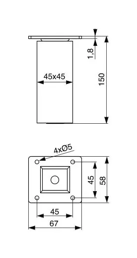 Négyzet alakú | fa bútorláb fém talppal, amely a bútor aljára csavarozható. A láb nincs lakkozva, így bármilyen kívánt színre festhető vagy olajjal, viasszal, illetve lakkal kezelhető.