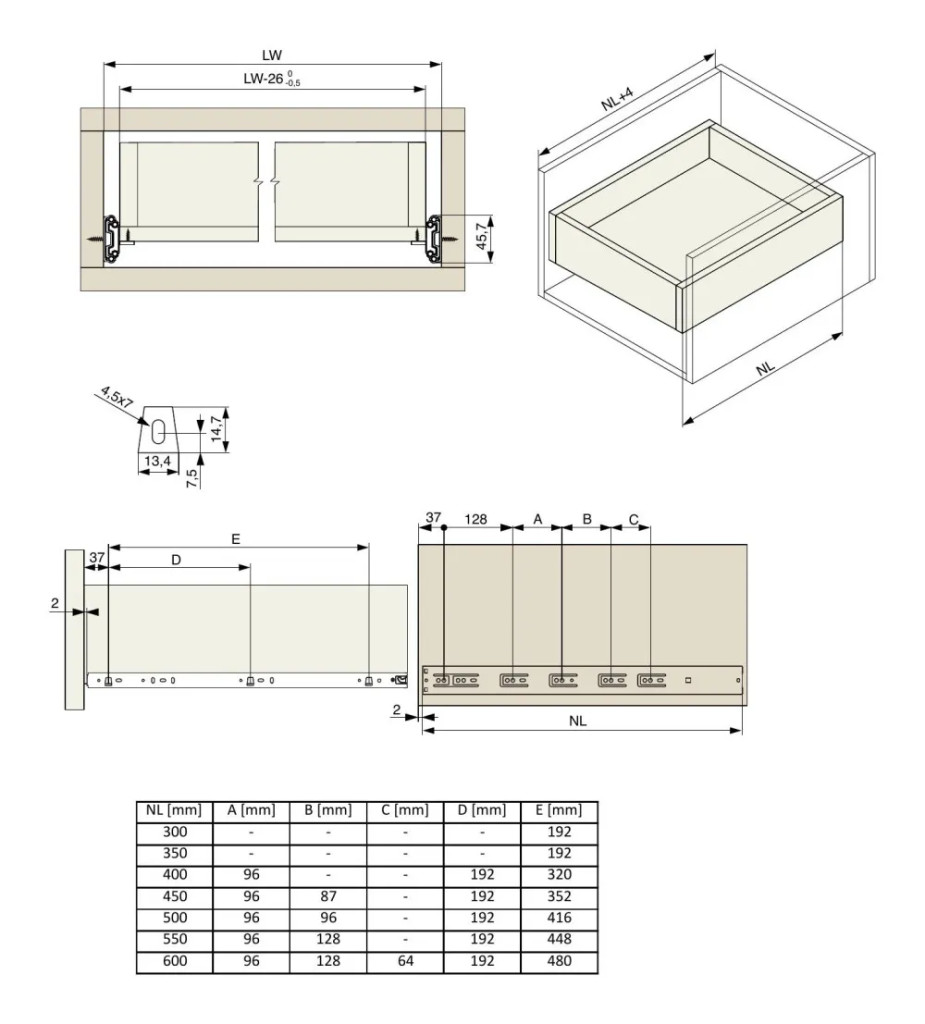 Riex NB58 BB golyós fióksín tartókkal, telj. kihúz., csillap., 35/30 kg, H45, 1.2*1.2*1.5 mm, 400 mm